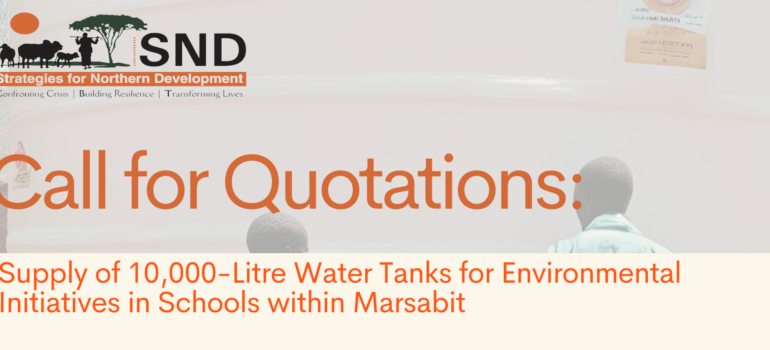 Call for Quotations: Supply of 10,000-Litre Water Tanks for Environmental Initiatives in Schools The Strategies for Northern Development (SND) is a registered local non-governmental organization dedicated to working with nomadic pastoralist communities in Northern Kenya and Southern Ethiopia since its inception on 6th December 2007. Guided by our vision to