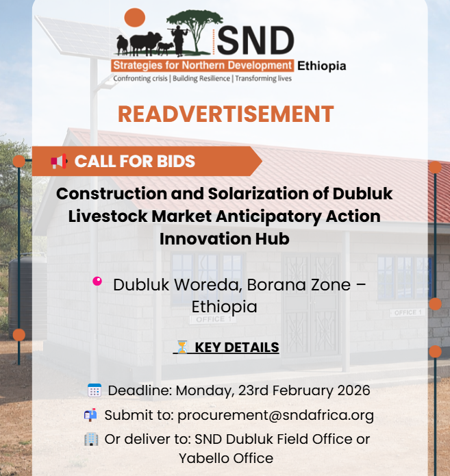 Strategies for Northern Development (SND) – Ethiopia invites qualified and eligible contractors to submit bids for the: